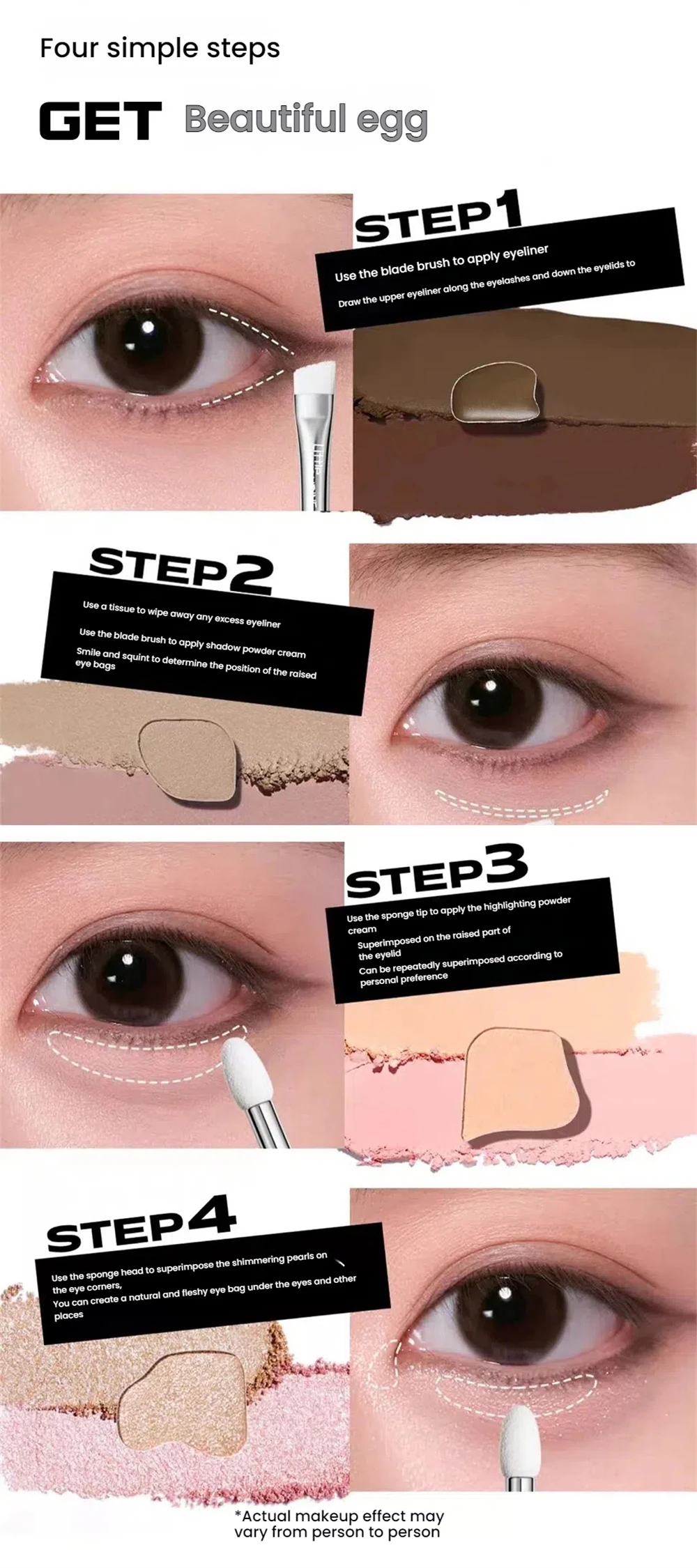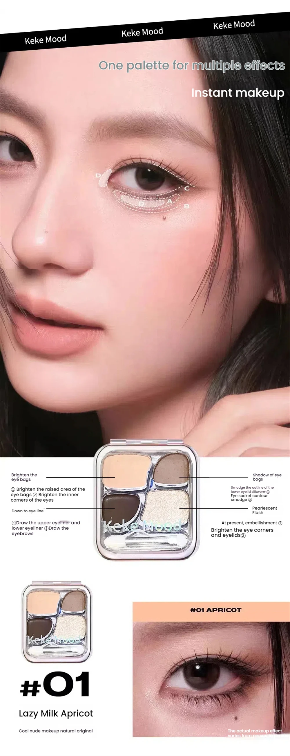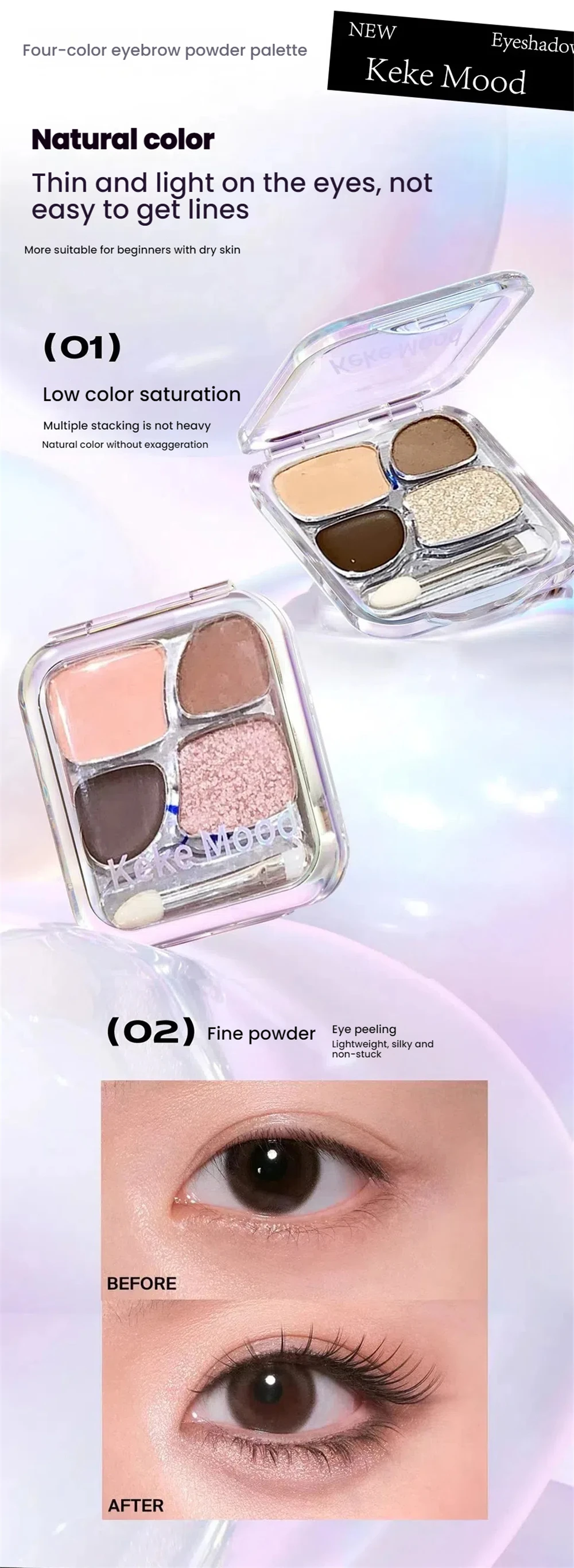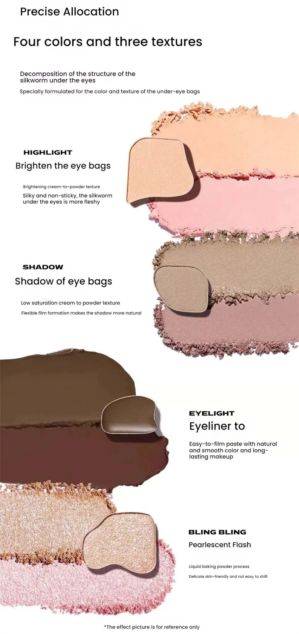 Sleeping silkworm shadow, low saturation frost to powder texture, flexible film formation, good extension of shadows, more natural