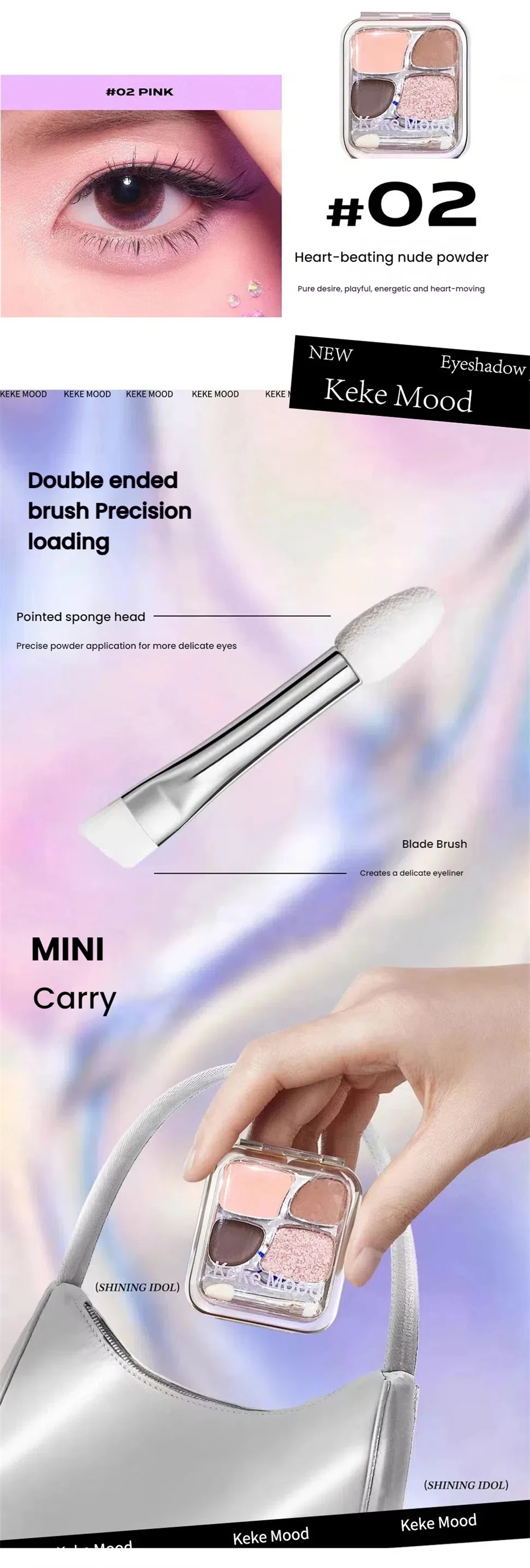 Pearl burst and shimmer The liquid baking powder process is delicate, adheres to the skin, and is not easily displaced, causing a burst of C-point star eyes