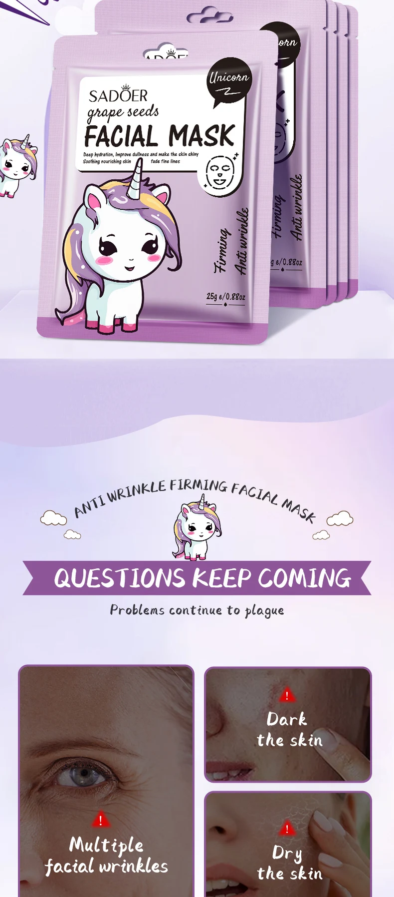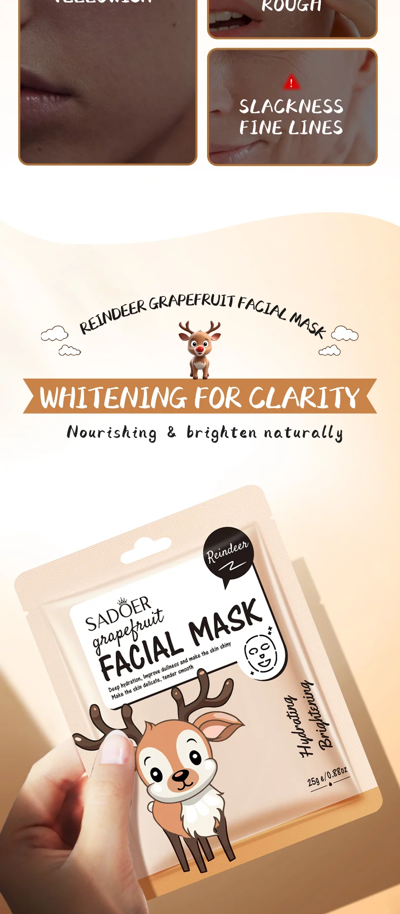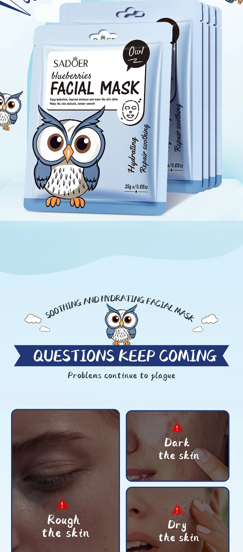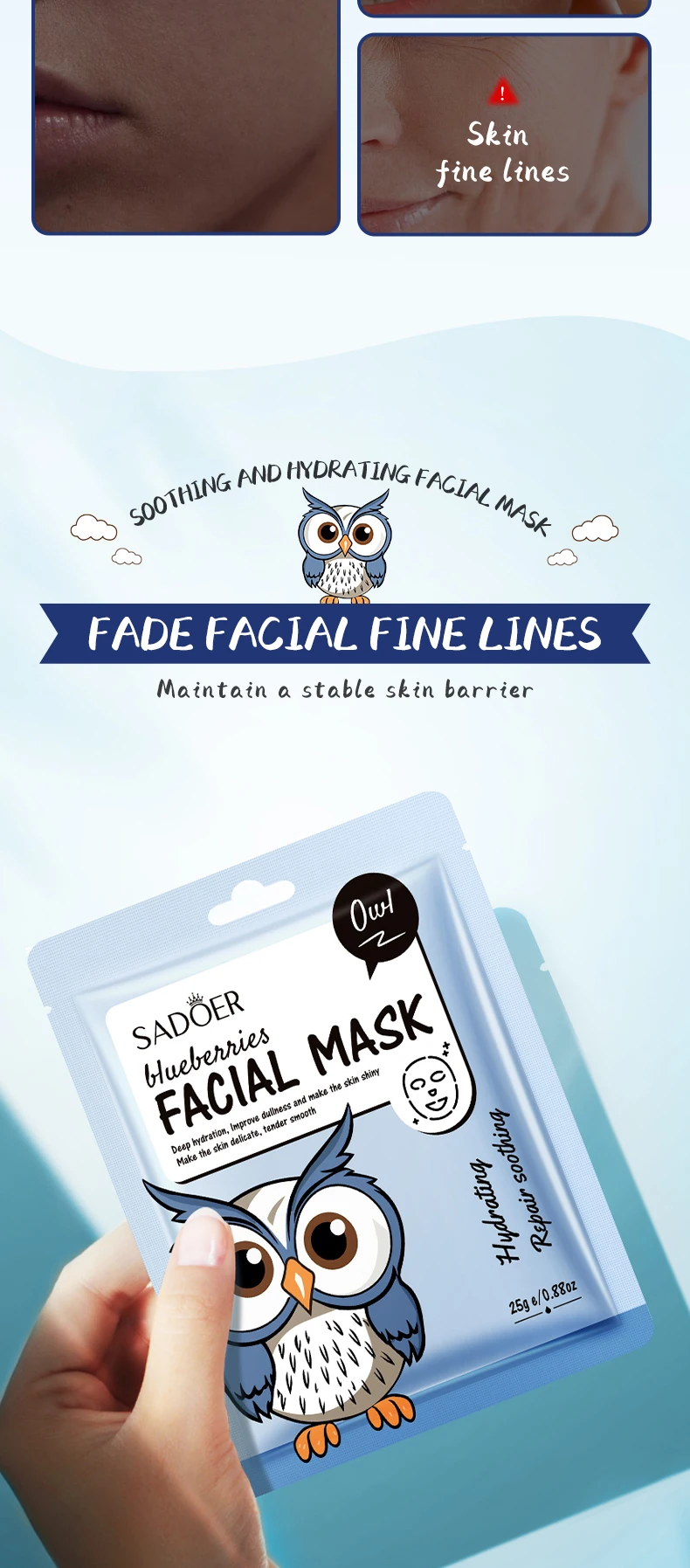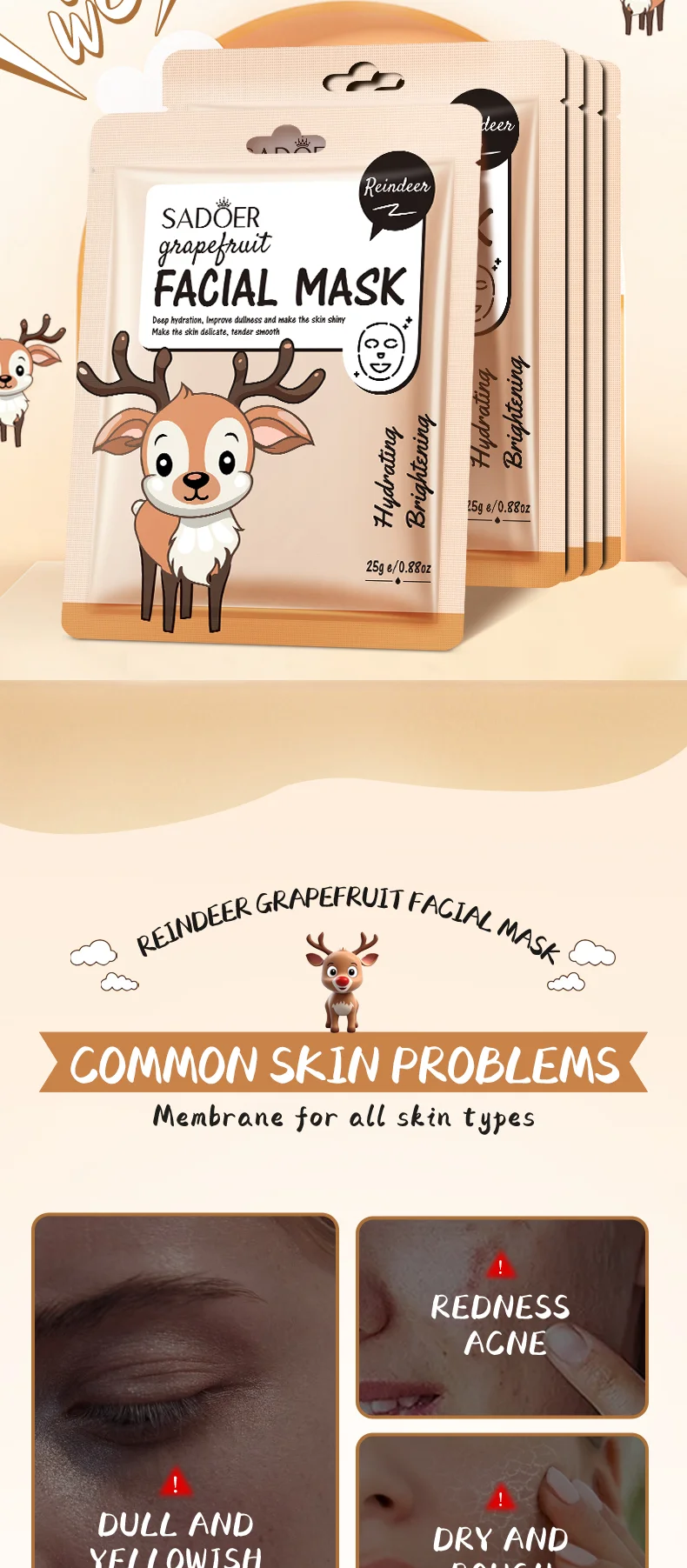 5pcs SADOER Cartoon Fresh Fruit Facial Masks Moisturizing Soothing Brightening Hydrating Face Mask for Facial Skin Care