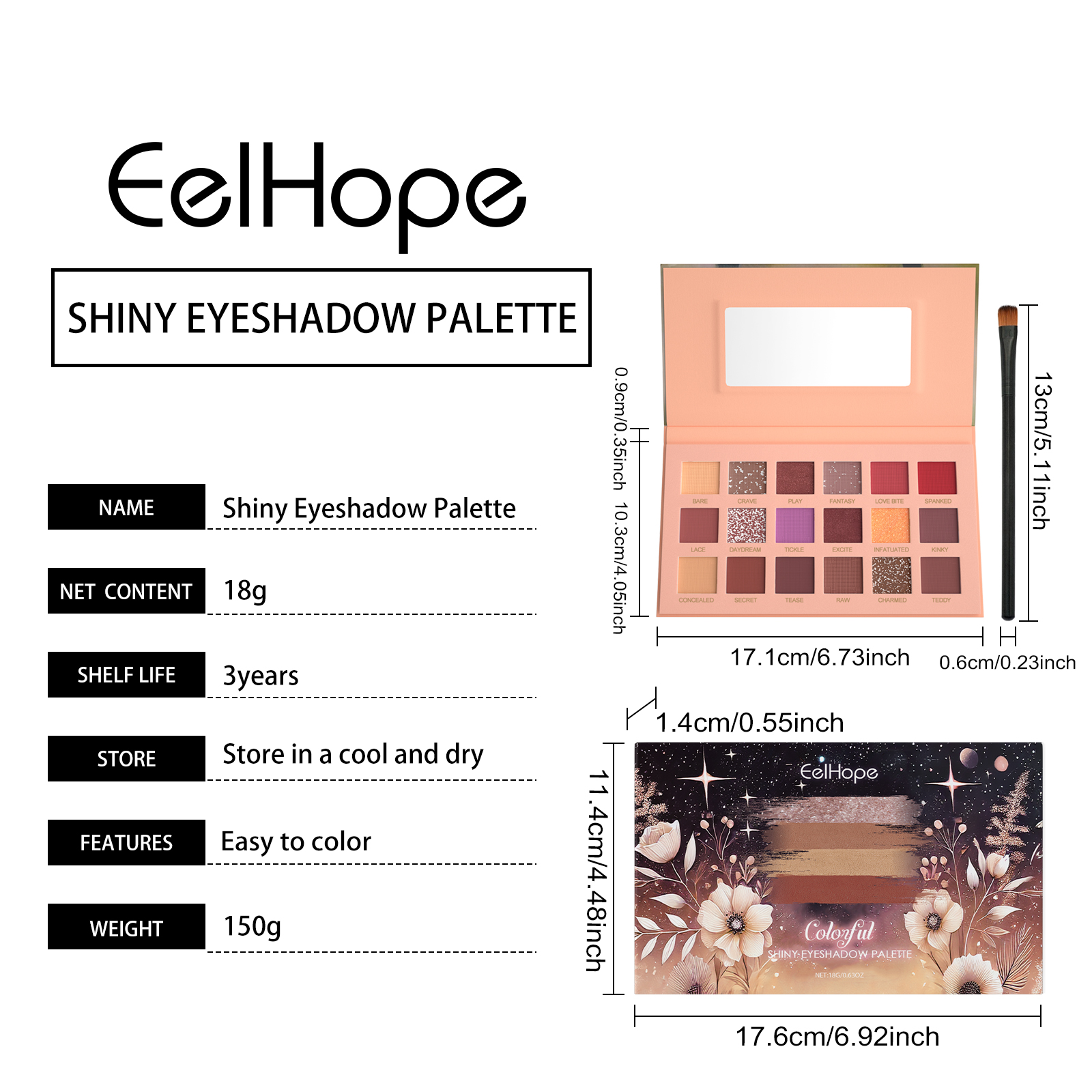 Eelhope 18-Color Eyeshadow Palette Eyeshadow Makeup Eyeshadow Multicolor Eye Palette With 18-Color Everyday Glitter